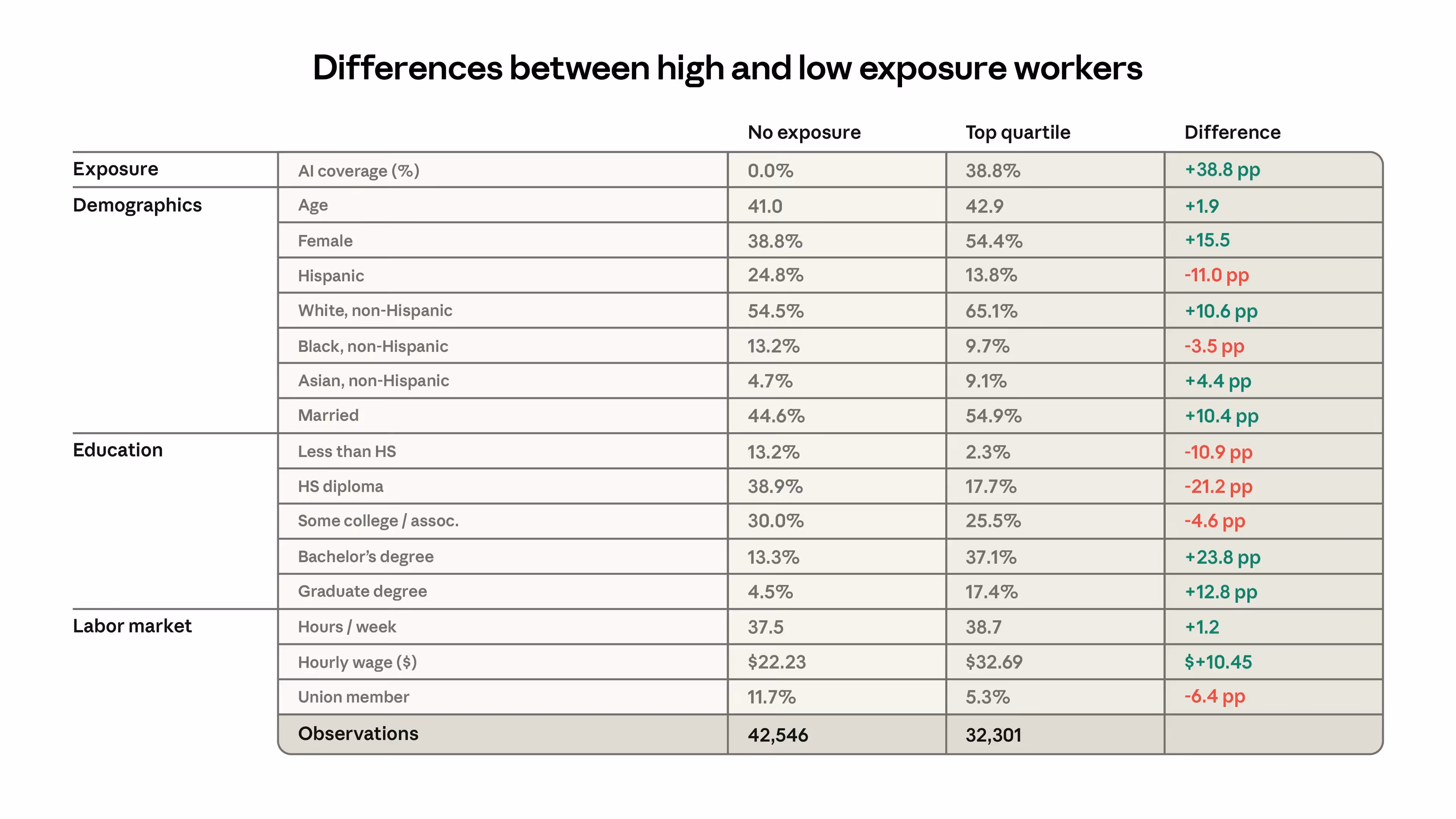 Image 2 : Différences entre les travailleurs à forte et faible exposition, Enquête sur la population actuelle (source)